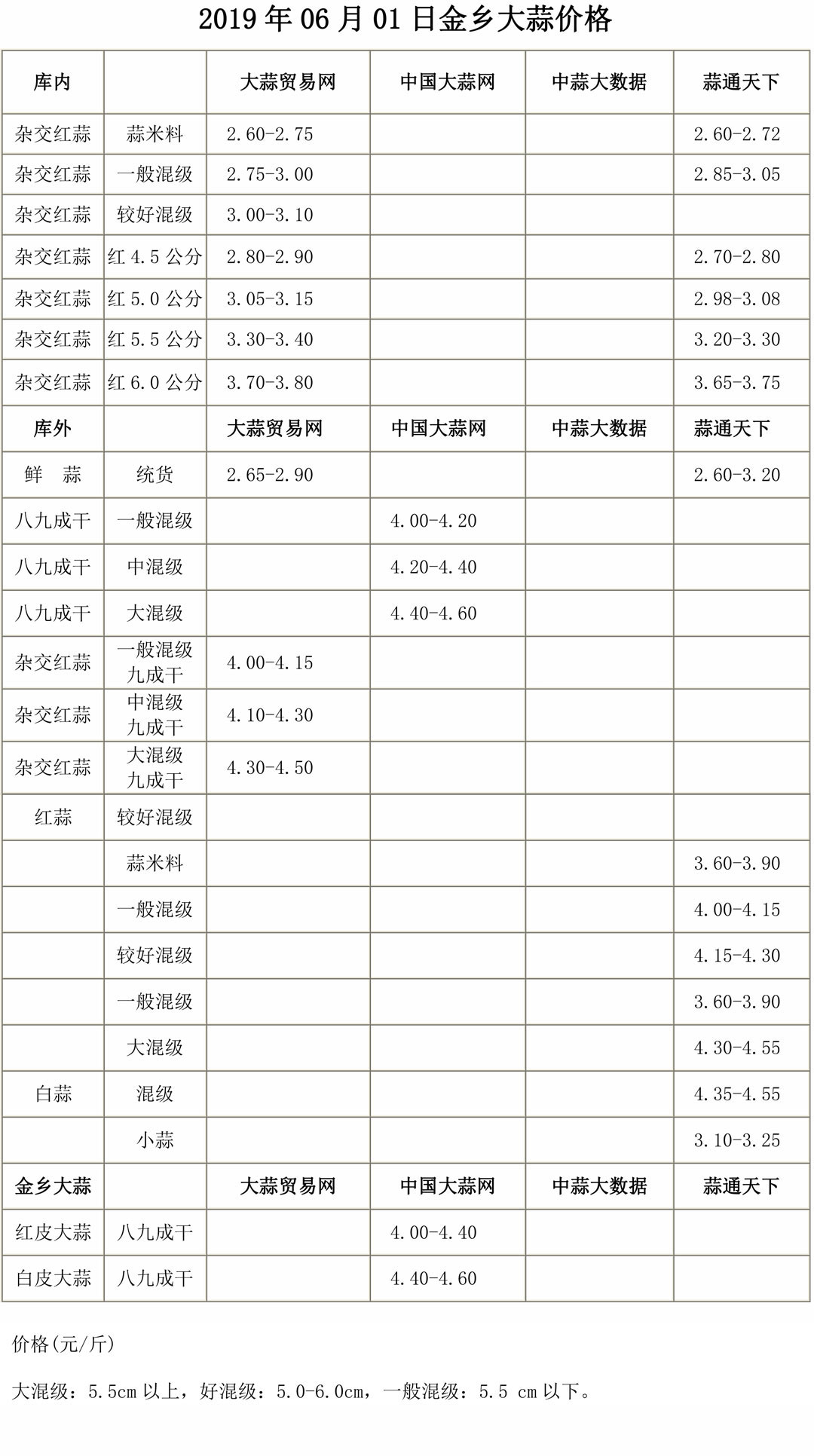 2019年6月01日金鄉(xiāng)大蒜價格