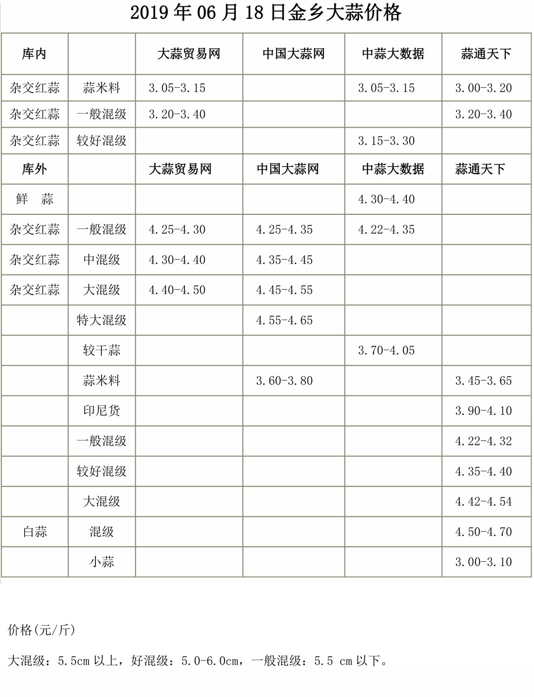 2019年6月18日金鄉(xiāng)大蒜價(jià)格