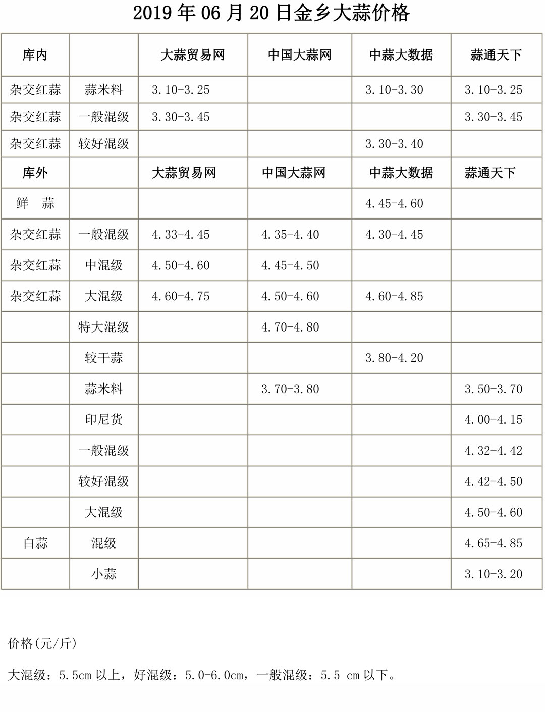 2019年6月20日金鄉(xiāng)大蒜價(jià)格