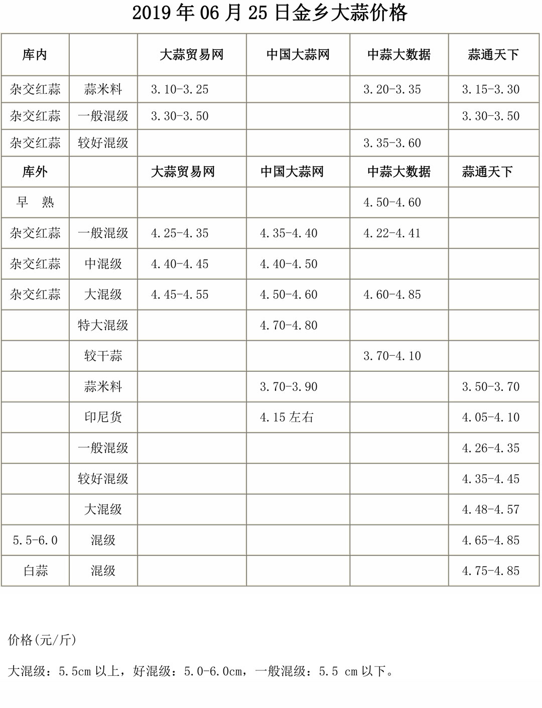 2019年6月25日金鄉(xiāng)大蒜價(jià)格