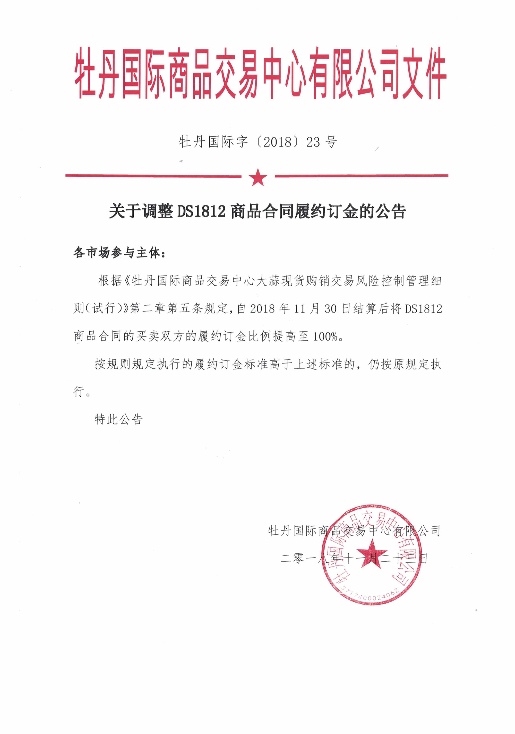 關(guān)于調(diào)整DS1812商品合同履約訂金的公告