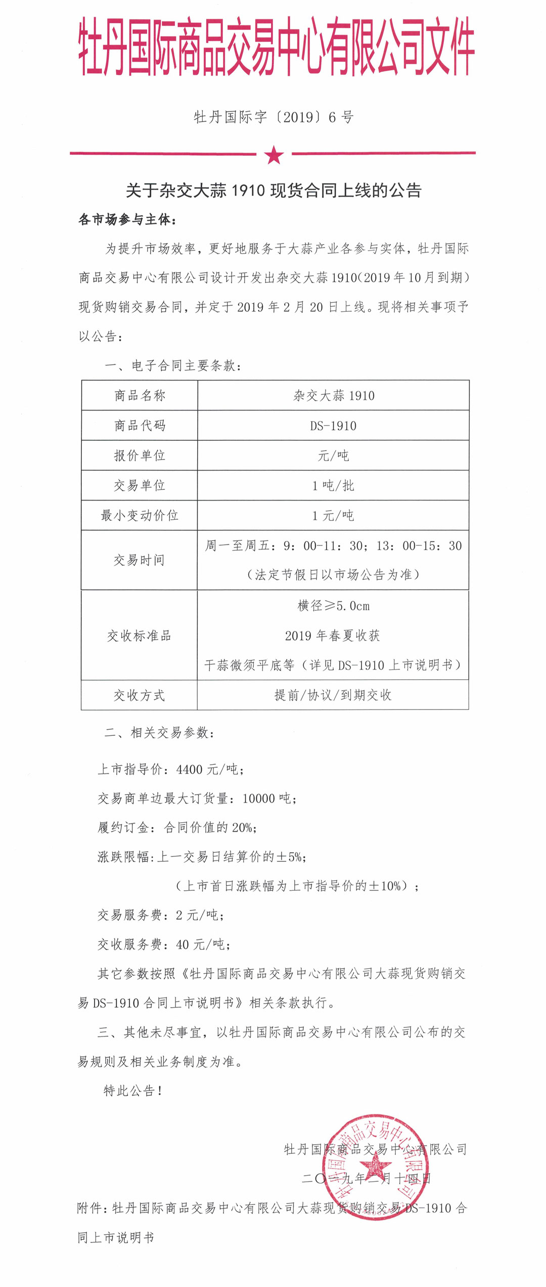 關(guān)于雜交大蒜1910現(xiàn)貨合同上線的公告