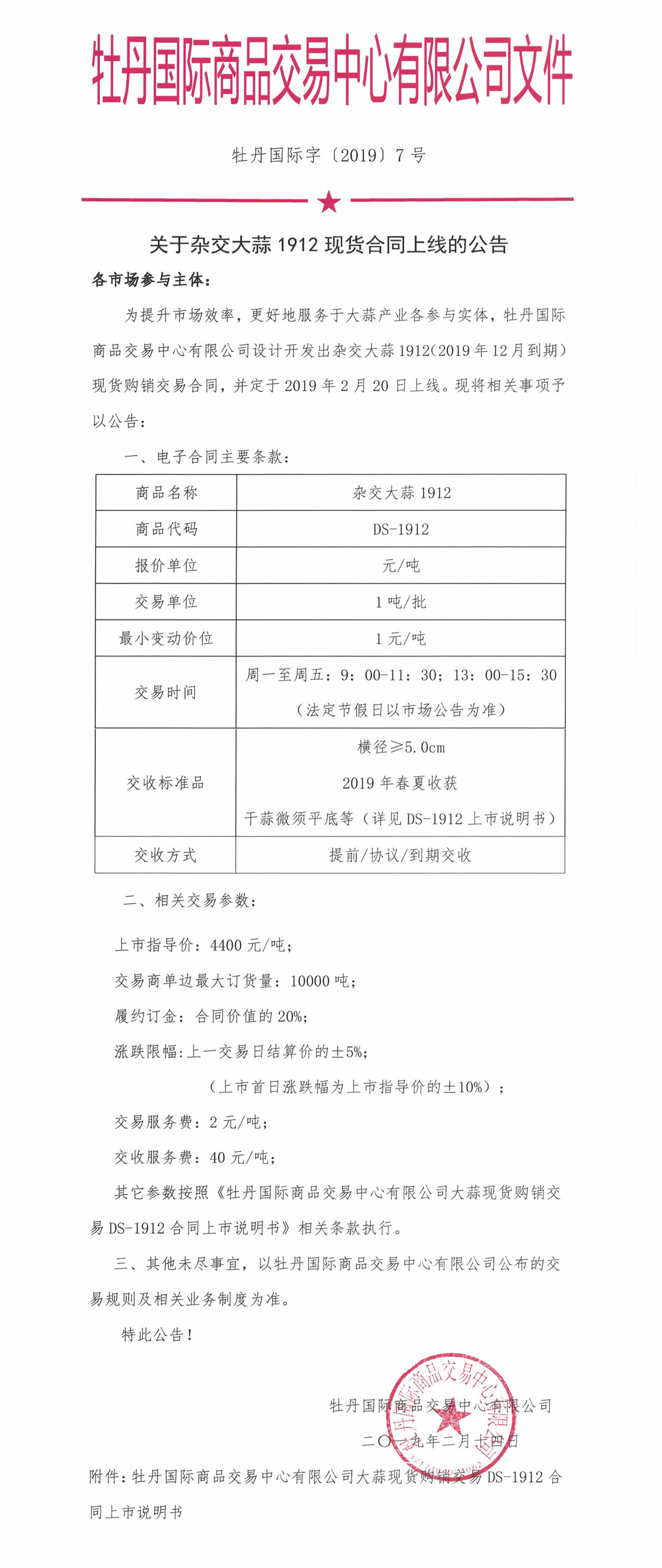關(guān)于雜交大蒜1912現(xiàn)貨合同上線的公告
