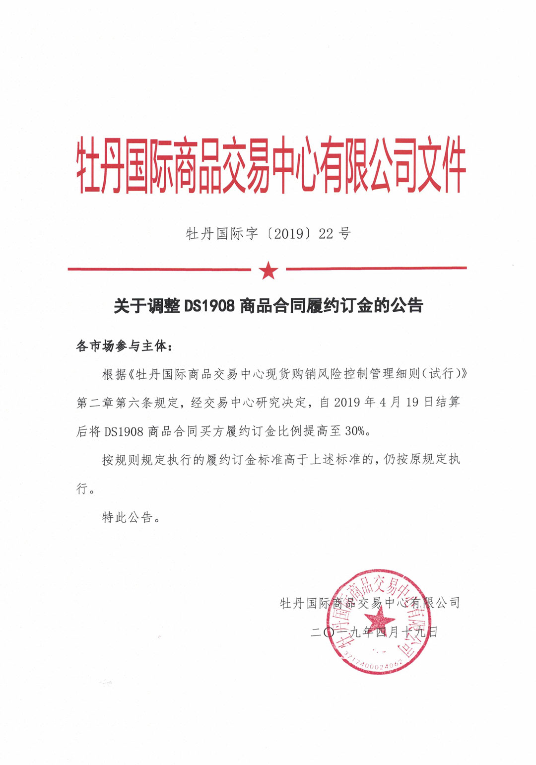 關(guān)于調(diào)整DS1908商品合同履約訂金的公告