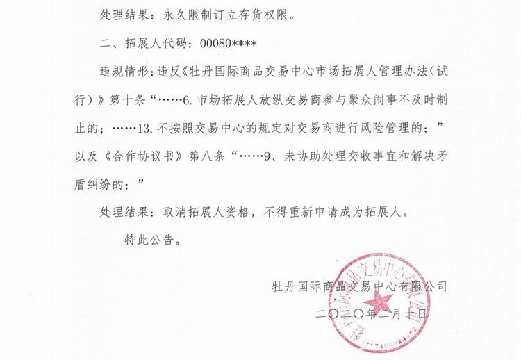 關于違規(guī)行為處理結果的公告(2020第1號)