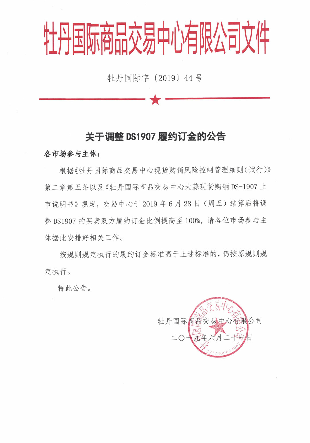 關(guān)于調(diào)整DS1907履約訂金的公告