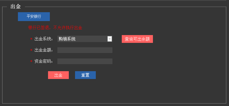 “資金管理”-出金,將市場端資金提現(xiàn)出金到銀行卡,如下圖;